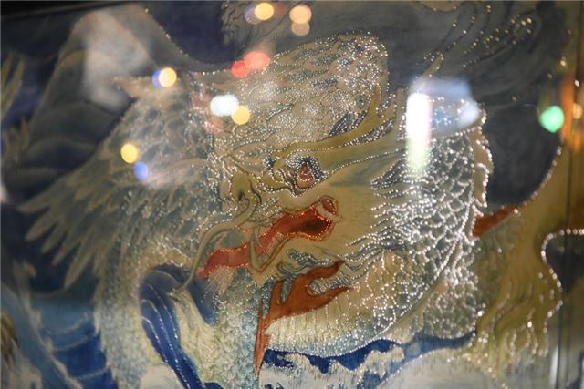 2024年9月14日在自贡市中国彩灯博物馆拍摄的灯组“群龙图”,纤细的光纤灯模拟出刺绣的质感。新华社记者 唐文豪 摄