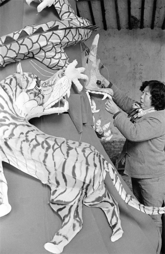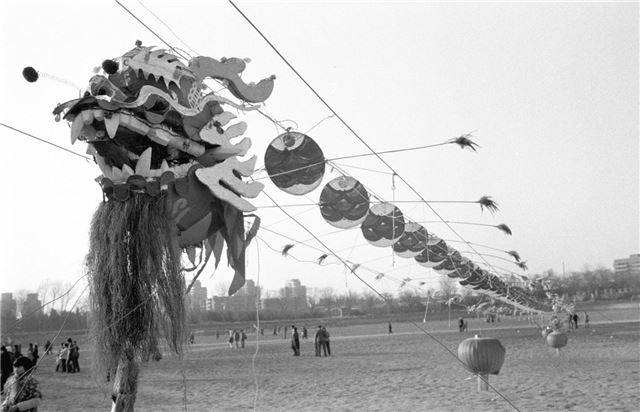 1986年,在北京紫竹院公园举办的元宵灯会上展出了一条长70米的大龙灯,采用我国风筝的传统技艺制作而成。 新华社记者 薛铁军 摄