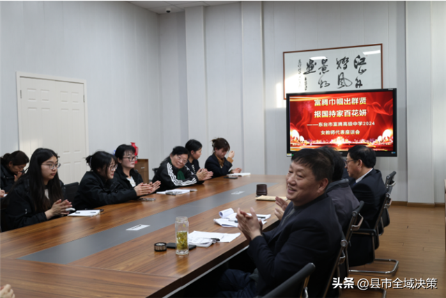 迟日江山丽,春风花草香。在这明媚的春日中,东台市富腾学校召开了女教师代表座谈会。座谈会汇聚了在学校教育教学活动中表现突出、充满活力的青年女教师,以及经验丰富的资深的女教育工作者。王晓秋董事长、王志生校长、高义宏副校长、施春贤主任等校领导亲临会议。座谈会上大家畅所欲言,气氛和谐。大家回顾过去,展望未来,立足富腾,共话发展。