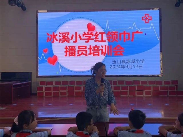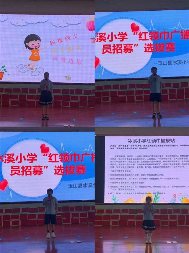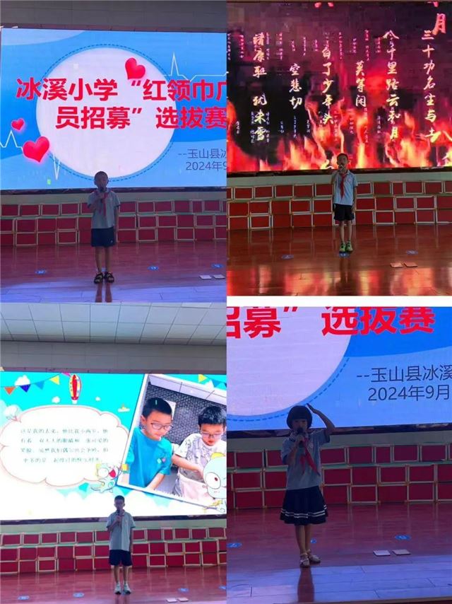 为进一步丰富队员校园文化生活,充实红领巾广播站播音 ,2024年9月12日,玉山县冰溪小学在报告厅隆重举行了红领巾广播站播音员选拔活动。