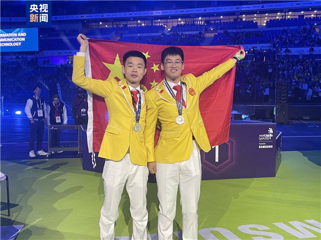 △混凝土建筑项目银牌获得者:中国选手周秧锋(左)、田闰(右)