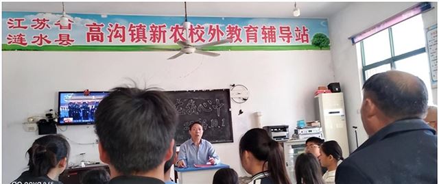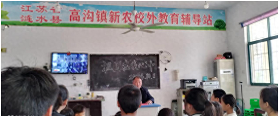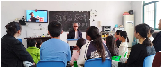 图为新农村辅导站站长王士宾给学生讲新中国成立以来,我国所取得的伟大成就