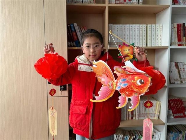 活动现场一派喜庆祥和,书房内外、走道两侧,悬挂着红红火火的灯笼和各式灯谜,为传统佳节增添了热闹气氛。参与群众纷纷落座,在工作人员的悉心指导下,兴致勃勃地开始动手制作非遗鱼灯。通过拆卸、折叠、拼接、组装,不起眼的手工材料在巧手翻飞下,整合成一盏盏形态各异的玲珑鱼灯。它们或被举着或被提着,在人们手中闪闪发亮,一阵阵欢声笑语洒满书房。