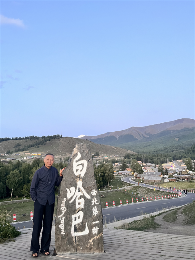 在观景台上把白哈巴村全景尽收眼底,叹为观止。该村坐落在一条沟谷之中,建在两条小溪之间的狭长台地上,依山傍水而立。村庄位于阿尔泰山山脉的山谷平地上,与哈萨克斯坦的大山遥遥相望。阿尔泰山上密密麻麻的墨绿的松树林一直延伸到村庄里,而村民居住的木屋和圈养牲畜的栅栏则散布在松林和桦林之中。整个村庄充满了安宁和祥和的氛围,仿佛人与自然在这里和谐共处。