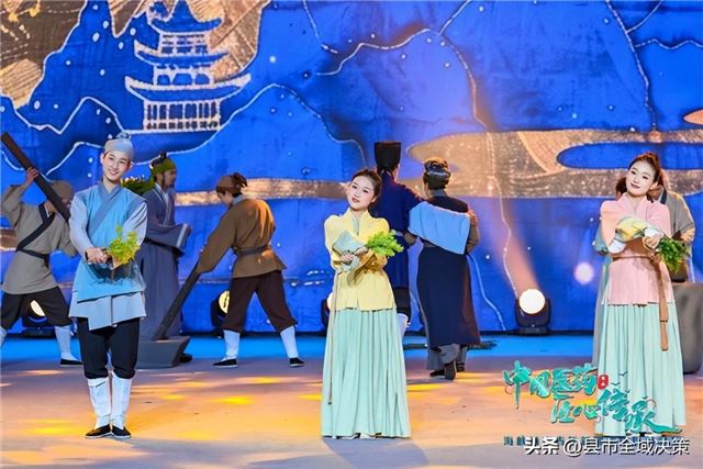 湖北蕲春县黄梅戏剧团应邀参加“本草之约”篇章的节目表演。“清清蕲河水,悠悠艾草香”艾草的故事在情景音画《艾之风》中叙说,在岁月中流淌。院落之中,李时珍怀抱艾草,指导村民制药,欢声笑语洋溢在艾草的芬芳中。演员们精彩的表演展示了艾草的独特魅力,让蕲艾这个绝美的方物,以其温和低调的品性,自带光华。