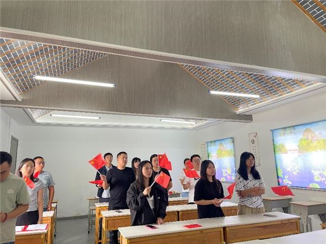 火红的国旗,火红的爱国心;一样的色彩,一样的激情。在最后的“送一份吉祥”环节中,年轻干部们手举五星红旗,合影留念,把最诚挚的祝福送给祖国,也得到了“我与国旗合个影”美丽瞬间的定格。感恩、自豪、骄傲、青年们的心中永远有一抹鲜艳的中国红。