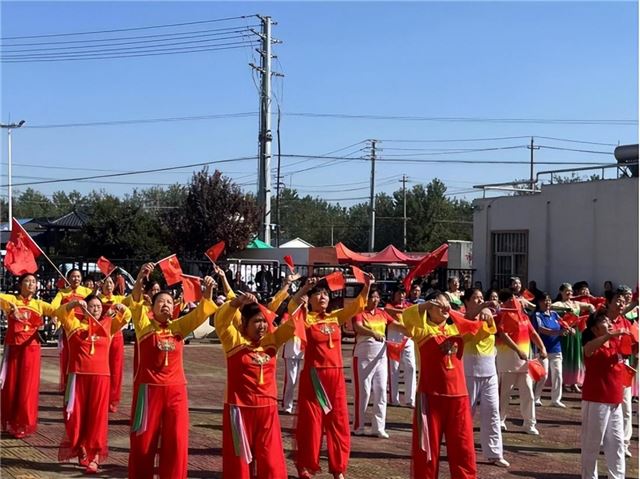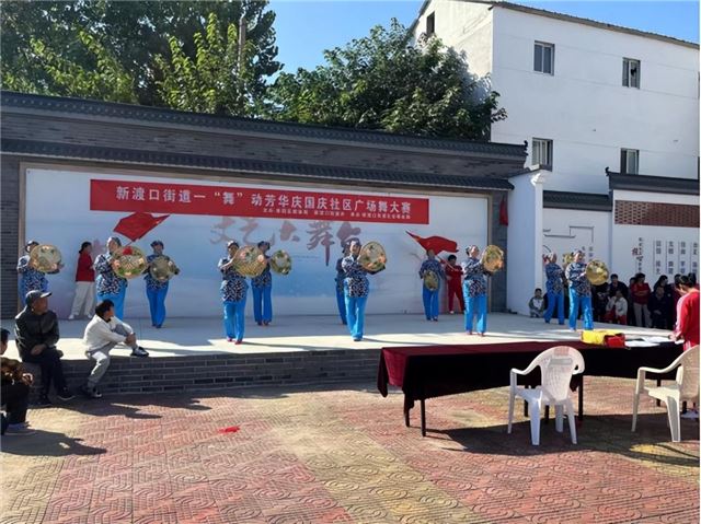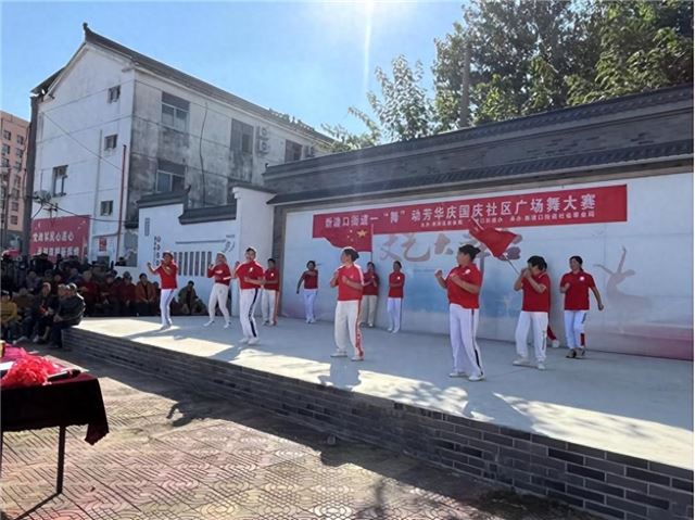 为庆祝国庆佳节,丰富广大居民文体生活,增强居民凝聚力和归属感,展示积极向上的精神风貌,在淮阴区教育体育局和淮阴区体育总会的指导下,10月3日上午,江苏淮安市淮阴区新渡口街道举办了一场别开生面的广场舞大赛。