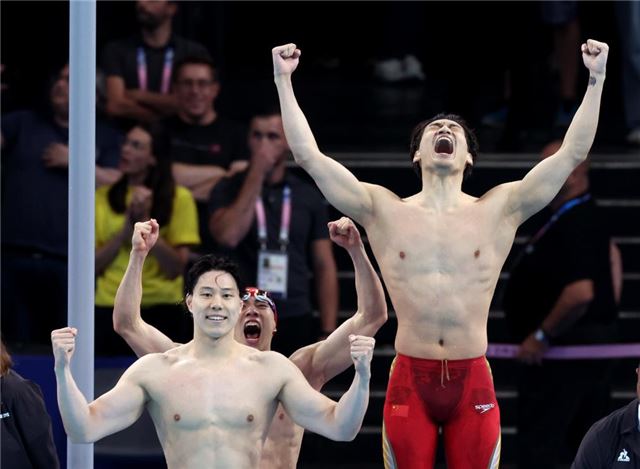 巴黎奥运会游泳赛场最后一个比赛日,男子4X100米混合泳接力决赛,当潘展乐完成反超,帮助中国队力压垄断该项目40年的美国队和占尽主场优势的法国队,以3分27秒46的成绩夺冠时,现场的欢呼声达到了顶峰。