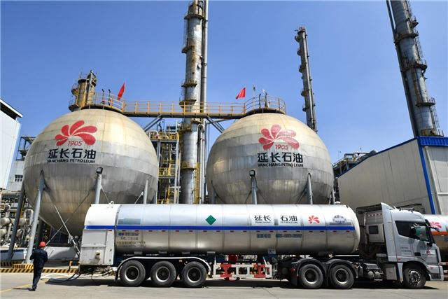 在陕西延长石油榆林煤化有限公司,二氧化碳正在装车(2022年6月30日摄)。新华社记者 张博文摄