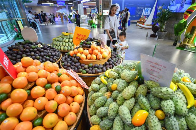 2023年7月1日,在中非经贸合作促进创新示范园(湖南高桥大市场),家长带着小朋友挑选非洲水果。新华社记者 陈泽国 摄
