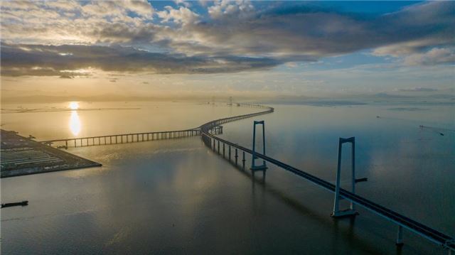6月27日,沐浴在晨曦中的深中通道(无人机照片)。新华社记者毛思倩 摄
