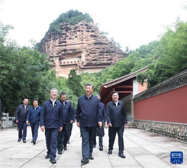 习近平在甘肃考察时强调 深化改革勇于创新苦干实干富民兴陇 奋力谱写中国式现代化甘肃篇章 途中在陕西宝鸡考察 蔡奇陪同考察 新华社甘肃兰州/陕西宝鸡9月13日电 中共中央总书记、国家主席、中央军委主席习近平近日在甘肃考察时强调,甘肃要深入落实党中央关于西部大开发、黄河流域生态保护和高质量发展的决策部署,完整准确全面贯彻新发展理念,坚持稳中求进工作总基调,着力在加强生态保护修复、加快绿色低碳转型发展、进一步全面深化改革开放、推动乡村全面振兴、加强民生保障、促进民族团结等方面下功夫,加快建设幸福美好新甘肃、不断开创富民兴陇新局面,奋力谱写中国式现代化甘肃篇章。 9月10日至13日,习近平在甘肃省委书记胡昌升和省长任振鹤陪同下,先后来到天水、兰州等地考察调研。 9月10日至13日,中共中央总书记、国家主席、中央军委主席习近平在甘肃考察。这是10日下午,习近平在天水市全国重点文物保护单位伏羲庙考察。新华社记者 谢环驰 摄 9月10日至13日,中共中央总书记、国家主席、中央军委主席习近平在甘肃考察。这是10日下午,习近平在天水市全国重点文物保护单位伏羲庙考察。新华社记者 谢环驰 摄 9月10日至13日,中共中央总书记、国家主席、中央军委主席习近平在甘肃考察。这是10日下午,习近平在天水市全国重点文物保护单位伏羲庙考察。新华社记者 谢环驰 摄 10日下午,习近平在天水市考察了全国重点文物保护单位伏羲庙,了解文化遗产保护传承等情况。他指出,伏羲庙具有很高的历史文化价值,要将这份宝贵文化遗产保护传承好,让祖先的智慧和创造永励后人,不断增强民族自豪感和自信心。 9月10日至13日,中共中央总书记、国家主席、中央军委主席习近平在甘肃考察。这是11日上午,习近平在天水市麦积区南山花牛苹果基地考察时,听取引洮供水工程情况汇报。新华社记者 鞠鹏 摄 11日上午,习近平前往麦积区南山花牛苹果基地考察。他结合展板听取引洮供水工程情况汇报,真切地回忆起2013年初来施工现场考察、指导解决施工难题的情景。当得知近600万群众从此告别苦咸水后,习近平十分高兴。他要求加强维护和管理,让这项工程在沿线群众生产生活中发挥更大效用。 9月10日至13日,中共中央总书记、国家主席、中央军委主席习近平在甘肃考察。这是11日上午,习近平在天水市麦积区南山花牛苹果基地考察。新华社记者 谢环驰 摄 9月10日至13日,中共中央总书记、国家主席、中央军委主席习近平在甘肃考察。这是11日上午,习近平在天水市麦积区南山花牛苹果基地考察时,走进果林了解相关种植、技术和管理情况。新华社记者 谢环驰 摄 9月10日至13日,中共中央总书记、国家主席、中央军委主席习近平在甘肃考察。这是11日上午,习近平在天水市麦积区南山花牛苹果基地考察时,走进果林了解相关种植、技术和管理情况。新华社记者 谢环驰 摄 9月10日至13日,中共中央总书记、国家主席、中央军委主席习近平在甘肃考察。这是11日上午,习近平在天水市麦积区南山花牛苹果基地考察时,同当地农民群众和农技人员亲切交流。新华社记者 谢环驰 摄 红彤彤的花牛苹果挂满枝头,一派丰收景象。习近平走进果林,了解相关种植、技术和管理情况。他说,乡村振兴关键在产业振兴。经过70多年培育发展,花牛苹果品牌更响亮了。要加强品种保护和培育,优化种植方式,创新营销模式,把这个特色产业做得更大,带动更多群众增收致富。他祝乡亲们的生活像苹果一样红红火火。 9月10日至13日,中共中央总书记、国家主席、中央军委主席习近平在甘肃考察。这是11日上午,习近平在天水市麦积山石窟考察。新华社记者 谢环驰 摄 9月10日至13日,中共中央总书记、国家主席、中央军委主席习近平在甘肃考察。这是11日上午,习近平在天水市麦积山石窟考察。新华社记者 谢环驰 摄 9月10日至13日,中共中央总书记、国家主席、中央军委主席习近平在甘肃考察。这是11日上午,习近平在天水市麦积山石窟考察。新华社记者 谢环驰 摄 9月10日至13日,中共中央总书记、国家主席、中央军委主席习近平在甘肃考察。这是11日上午,习近平在天水市麦积山石窟考察时,同现场游客亲切交流。新华社记者 翟健岚 摄 9月10日至13日,中共中央总书记、国家主席、中央军委主席习近平在甘肃考察。这是11日上午,习近平在天水市麦积山石窟考察时,向现场游客挥手致意。新华社记者 谢环驰 摄 9月10日至13日,中共中央总书记、国家主席、中央军委主席习近平在甘肃考察。这是11日上午,习近平在天水市麦积山石窟考察。新华社记者 鞠鹏 摄 随后,习近平来到麦积山石窟,沿着栈道仔细察看距今1600多年的洞窟和雕塑、壁画,同保护修复工作人员亲切交流。习近平说,我国四大石窟是中华文明的瑰宝,都具有重要的历史价值、文化价值。他希望文物工作者赓续“莫高精神”,潜心为国护宝,为传承创新中华优秀传统文化、增强中华文化影响力作出更大贡献。 9月10日至13日,中共中央总书记、国家主席、中央军委主席习近平在甘肃考察。这是11日下午,习近平在兰州市安宁区枣林西社区党群服务中心考察。新华社记者 王晔 摄 9月10日至13日,中共中央总书记、国家主席、中央军委主席习近平在甘肃考察。这是11日下午,习近平在兰州市安宁区枣林西社区