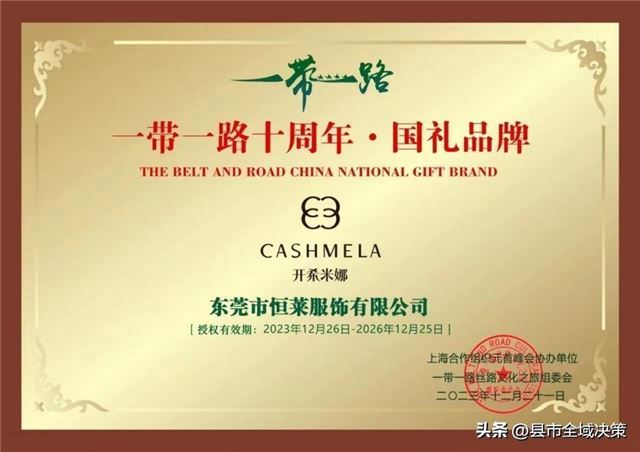 由此可见,要成为国礼,对产品的要求是非常高的。开希米娜为助力中国产品走向世界,使中国产品在“一带一路”沿线国家发扬光大。近日,开希米娜通过其过硬的品质,创新的技术和设计理念,以及国货匠心的情怀,由一带一路丝路文化之旅、上海合作组织元首峰会组委会在全国发起的“一带一路十周年·国礼品牌”活动评选中,赢得组委会的高度认可,最终在上万个品牌中脱颖而出,成功入围,获评“一带一路十周年•国礼品牌”。