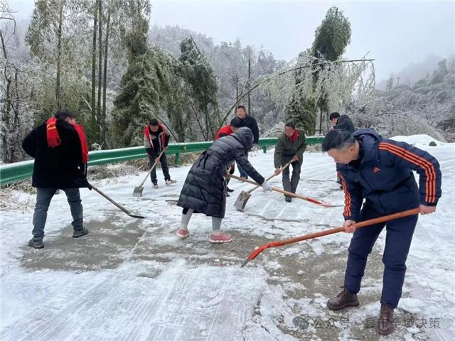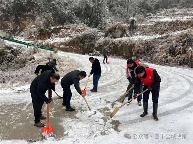 2024年2月23日,新年伊始,安徽太湖县北中镇将军村迎来了一场严重的冻雨降雪天气,导致道路结冰严重,给群众的出行带来极大的不便。为了道路通畅,保障群众的安全出行,将军村组织村干、党员和志愿者上路清除冰雪活动。