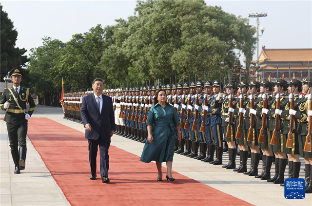 6月28日下午,国家主席习近平在北京人民大会堂同来华进行国事访问的秘鲁总统博鲁阿尔特举行会谈。这是会谈前,习近平在人民大会堂东门外广场为博鲁阿尔特举行欢迎仪式。新华社记者 高洁 摄