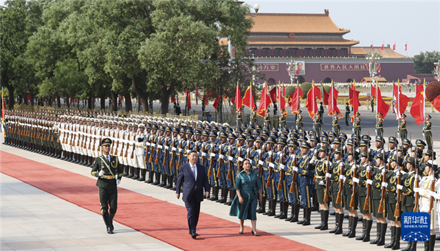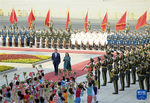 会谈前,习近平在人民大会堂东门外广场为博鲁阿尔特举行欢迎仪式。