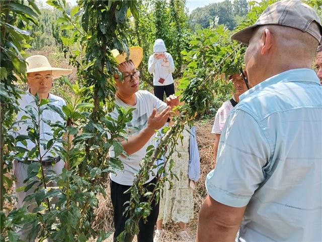 为更好地做好生态环境保护、科普宣传工作,湖北蕲春县科协、县生态环境分局、县农技协,特邀请黄冈市农科院院长、黄冈市农村专业技术协会会长涂军明,黄冈市农业科学院科研管理科负责人、黄冈市农村专业技术协会秘书长丁凤菊,黄冈市农业科学院果茶所负责人、黄冈市农村专业技术协会会员徐丽荣,蕲春县环保、林业、科普专家,先后到蕲春县区域特属植物协会——赤东镇徐亮蕲桑生态种植专业合作社基地、湖北云盖农业发展有限公司,2021年在刘河镇高潮村、横岗山村建成的70亩翠冠梨、50亩桃形李、30亩杨梅、10亩樱桃、20亩脆柿基地,开展生态环境保护、果茶技术传授等活动。同时,专家们指出,为保护土壤生态环境,防止病虫害发生,无论是种植葡萄、水果还是茶叶,最好不要施用化肥,多施用自然肥农家肥。