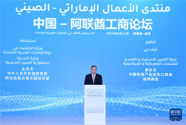 当地时间9月12日下午,国务院总理李强在迪拜出席中国-阿联酋工商论坛并致辞。新华社记者 姚大伟 摄 新华社迪拜9月12日电(记者郑明达 许可)当地时间9月12日下午,国务院总理李强在迪拜出席中国-阿联酋工商论坛并致辞。 李强表示,今年是中阿建交40周年。建交以来,两国关系日臻成熟,经贸合作取得丰硕成果,背后有着深刻的必然。这种必然,植根于两国悠久的经贸传统、契合的发展理念和相同的价值追求。中阿经贸往来跨越千年、联系紧密,友谊和信任不断深化。两国都积极拥抱经济全球化,携手在开放中创造发展奇迹,在合作中促进互利共赢。中阿同属亚洲大家庭,亚洲人民对和平、团结、合作有着坚定执着的向往,并为此付出了艰苦不懈的努力。过去数十年,亚洲总体保持和平稳定、快速发展,也正得益于此。这份我们共同的价值追求,在变乱交织的世界更显难能可贵,值得倍加珍视、始终坚守。 李强指出,当前,中阿关系正处在继往开来的历史节点,中阿经贸合作也迎来提质升级的重要契机。希望两国企业顺应和把握大趋势,从中阿持续坚定的双向奔赴中抓住合作新机遇。一是抓住高质量共建“一带一路”的新机遇,立足中阿、着眼全球探讨合作、开拓市场,深入推进互联互通、基础设施建设、融资等领域合作,推动两国深度融入全球产业链供应链。二是抓住中阿发展战略紧密对接的新机遇,从两国战略的交汇点、契合点寻找更多双方的利益联结点、合作增长点,深化贸易、新能源、旅游等领域合作。三是抓住科技产业创新方兴未艾的新机遇,积极向创新要动力,推进先进制造、数字经济、人工智能等前沿领域合作,携手抢占未来发展先机。欢迎更多阿联酋企业来华投资。相信在两国企业家共同努力下,中阿经贸合作将持续迸发活力,更好促进两国发展繁荣。 中阿两国政府、商会和企业约200余位代表出席会议。阿联酋工商界代表高度赞赏中国发展活力和市场潜力,期待在共建“一带一路”框架内进一步加大在华投入,加强在基础设施、科技创新、能源等领域合作,实现互利共赢。