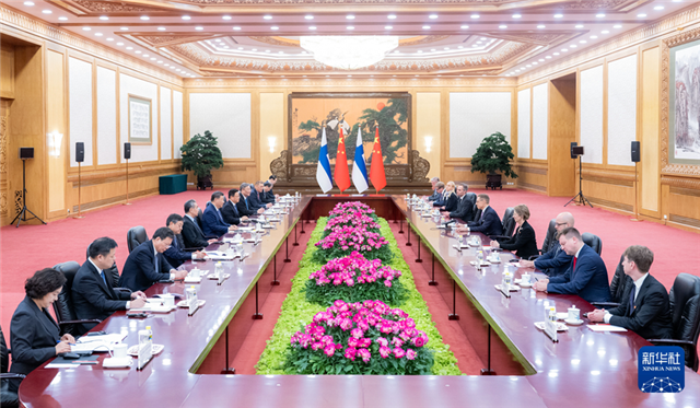 10月29日下午,国家主席习近平在北京人民大会堂同来华进行国事访问的芬兰总统斯图布举行会谈。这是会谈前,习近平在人民大会堂北大厅为斯图布举行欢迎仪式。新华社记者 王晔 摄 新华社北京10月29日电(记者冯歆然、邵艺博)10月29日下午,国家主席习近平在北京人民大会堂同来华进行国事访问的芬兰总统斯图布举行会谈。 习近平指出,芬兰是最早一批同新中国建交的西方国家之一,也是第一个同中国签订政府间贸易协定的西方国家。建交以来,中芬始终友好相处、互尊互信,树立了国与国之间超越历史、文化、制度差异,平等交往的典范。当前,世界百年变局加速演进,人类社会面临的风险挑战增多。在此背景下,中芬面向未来的新型合作伙伴关系更显独特价值,值得倍加珍惜和发扬光大。中方愿同芬方一道,加强战略合作,弘扬友好传统,将中芬面向未来的新型合作伙伴关系进一步推向前进,更好造福两国和两国人民,为世界和平和发展作出新贡献。 习近平强调,中芬关系长期健康稳定发展,最重要的原因就是两国始终坚持相互尊重、平等相待,照顾彼此核心利益和重大关切。中芬务实合作起步早、成果多、潜力大。不久前召开的中国共产党二十届三中全会对进一步全面深化改革、推进中国式现代化作出系统部署,这将给中芬两国合作以及全球发展带来新动力、新机遇。欢迎芬方积极参与中国式现代化进程,拓展绿色转型、信息技术、数字经济、人工智能、新能源等新兴产业合作,构建新时期两国互利合作新格局。中方愿同芬方进一步扩大人文交流,决定将芬兰列入单方面免签政策范围,欢迎更多芬兰朋友来华经商、旅游、留学。 习近平指出,中芬两国都爱好和平,都倡导多边主义和自由贸易。中方愿同芬方加强应对气候变化、生物多样性保护、全球可持续发展、人工智能治理等问题的沟通和合作,携手维护世界和平稳定,推动构建平等有序的世界多极化、普惠包容的经济全球化。明年是中国同欧盟建交50周年,希望芬方继续为推动中欧关系健康稳定发展发挥积极作用,实现中芬关系、中欧关系相互促进、共同发展。 10月29日下午,国家主席习近平在北京人民大会堂同来华进行国事访问的芬兰总统斯图布举行会谈。新华社记者 翟健岚 摄 斯图布表示,我非常高兴在就任总统不久后访华,时隔14年再次同习近平主席会面。从那时以来世界形势发生很大变化。中国取得了令人惊叹的发展成就。建交74年来,芬中始终相互尊重、真诚相待、平等对话,双边关系保持良好发展,合作领域不断拓展,取得丰硕成果。芬方坚持一个中国原则,愿同中方共同庆祝好明年建交75周年,密切高层交往,扩大人文交流,深化经贸、绿色能源、可持续发展等领域务实合作。芬方赞赏中方在国际关系中坚持大小国家一律平等,赞赏习近平主席为解决当今世界各种全球性挑战提出的重大倡议理念,重视中方在国际事务中的重要影响以及发挥的稳定性、建设性作用,愿同中方加强多边沟通协作,为促进世界和平与稳定作出贡献。欧中经济紧密相联,“脱钩断链”“新冷战”不符合任何一方利益。芬方愿为推动欧中关系顺利发展发挥积极作用。 双方还就乌克兰危机和巴以冲突等问题深入交换意见。习近平阐述了中方原则立场,表示愿同包括芬兰在内的有关各方共同努力,继续为推动和平解决危机发挥积极作用。 10月29日下午,国家主席习近平在北京人民大会堂同来华进行国事访问的芬兰总统斯图布举行会谈。会谈后,两国元首共同见证签署多项双边合作文件。这是习近平同斯图布握手。新华社记者 王晔 摄 会谈后,两国元首共同见证签署教育、水利、环境保护、循环经济、农食产品等领域多项双边合作文件。 双方发表《关于推进中芬面向未来的新型合作伙伴关系的联合工作计划(2025-2029)》。 10月29日下午,国家主席习近平在北京人民大会堂同来华进行国事访问的芬兰总统斯图布举行会谈。这是会谈前,习近平在人民大会堂北大厅为斯图布举行欢迎仪式。新华社记者 丁林 摄 10月29日下午,国家主席习近平在北京人民大会堂同来华进行国事访问的芬兰总统斯图布举行会谈。这是会谈前,习近平在人民大会堂北大厅为斯图布举行欢迎仪式。新华社记者 翟健岚 摄 10月29日下午,国家主席习近平在北京人民大会堂同来华进行国事访问的芬兰总统斯图布举行会谈。这是会谈前,习近平在人民大会堂北大厅为斯图布举行欢迎仪式。新华社记者 殷博古 摄 10月29日下午,国家主席习近平在北京人民大会堂同来华进行国事访问的芬兰总统斯图布举行会谈。这是会谈前,习近平在人民大会堂北大厅为斯图布举行欢迎仪式。新华社记者 谢环驰 摄 10月29日下午,国家主席习近平在北京人民大会堂同来华进行国事访问的芬兰总统斯图布举行会谈。这是会谈前,习近平和夫人彭丽媛同斯图布和夫人苏珊娜合影。新华社记者 谢环驰 摄 会谈前,习近平和夫人彭丽媛在人民大会堂北大厅为斯图布和夫人苏珊娜举行欢迎仪式。 天安门广场鸣放21响礼炮,礼兵列队致敬。两国元首登上检阅台,军乐团奏中芬两国国歌。斯图布在习近平陪同下检阅中国人民解放军仪仗队,并观看分列式。 当晚,习近平和彭丽媛在人民大会堂金色大厅为斯图布夫妇举行欢迎宴会。 王毅参加上述活动。