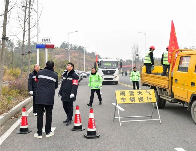 物资保障、转运到位。物资保障组同步将融雪剂、防滑料、除雪除冰工具等应急物资快速转运至抢险现场,为应急抢险提供充足保障。