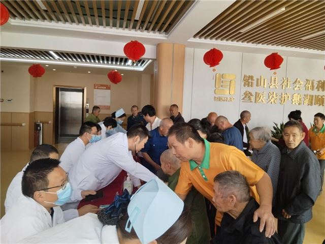 金秋时节,丹桂飘香。 在九九重阳节即将来临之际,为弘扬中华民族尊老、敬老、爱老的传统美德,10月10日上午铅山县总医院人民医院院区携手铅山县红十字会、铅山县南丁格尔志愿护理服务队走进铅山县社会福利中心,为老人们送去了一场送健康送温暖义诊活动。