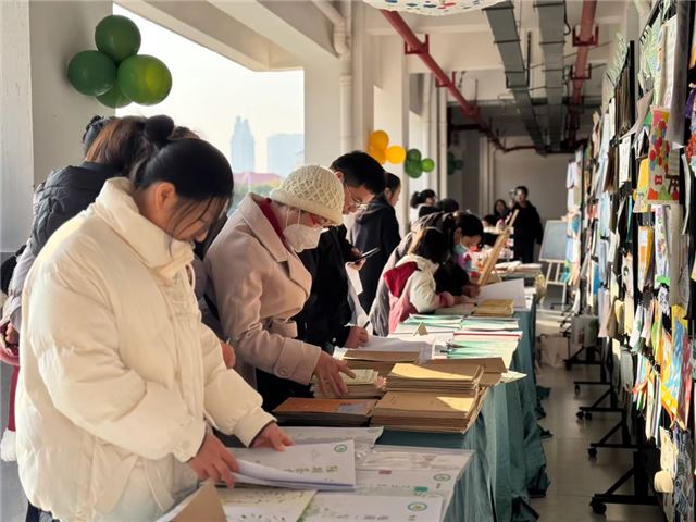 家长代表们在引导员的带领下,来到“优秀作业展示长廊”,每一份作业都匠心独运,融合了教师与学生的智慧。
