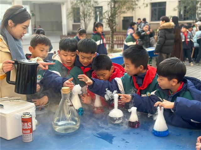 科技点亮生活,小小实验员们热情专业的展示着一个又一个有趣的实验。