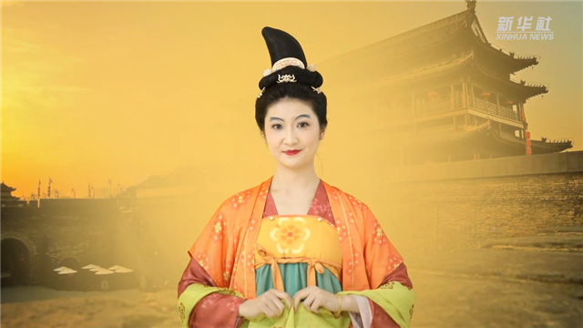 出土于唐乾陵永泰公主墓的《宫女图》是唐墓壁画中的精品,画中九位风姿绰约的宫女体现出大唐崇尚雍容明媚的女子风尚。画作色彩丰富,线条流畅,人物装束、服饰具有很高的史料价值。近年来,陕西服装工程学院团队通过提取壁画中的服饰色彩、款式等,艺术再现了唐代女子的流行服饰。